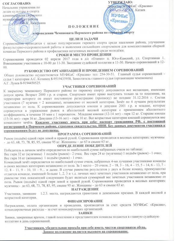 Чемпионат Пермского муниципального района по гиревому спорту состоится 02.04.2017 г.