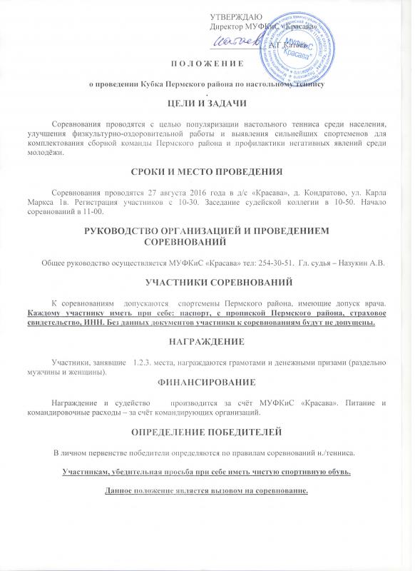 Финал кубка Пермского района по настольному теннису пройдет 27 августа 2016 г. в д/с "Красава."