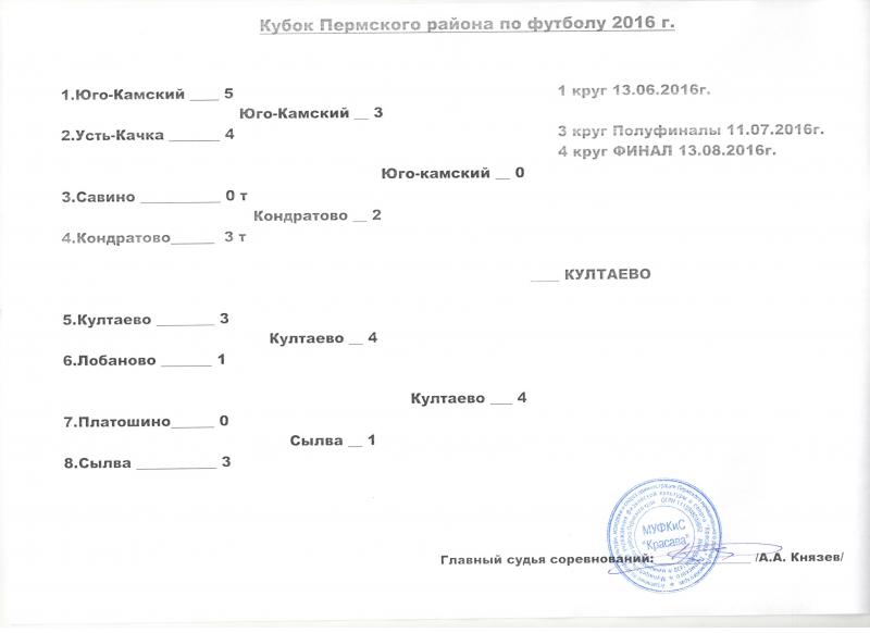 Итоги финала Кубка Пермского района по футболу среди мужских команд сезон 2016 г.