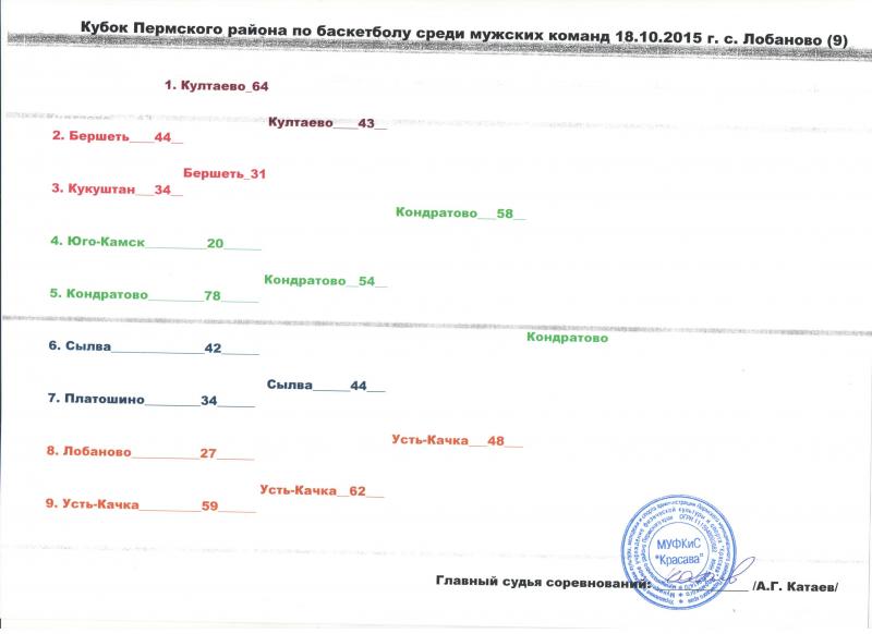 Итоги кубка Пермского муниципального района по баскетболу среди мужских команд 2015 г.