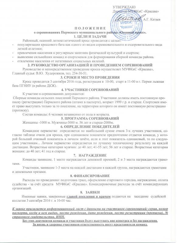 "Осенний кросс" среди поселений Пермского муниципального района состоится 03.09.2016 г.