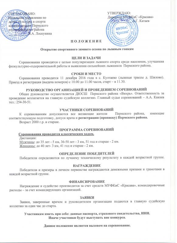 Открытие лыжного сезона! Соревнования по лыжным гонкам "Открытие лыжного сезона", состоятся 11 декабря 2016 года в с. Култаево на лыжных трассах д. Шилово.