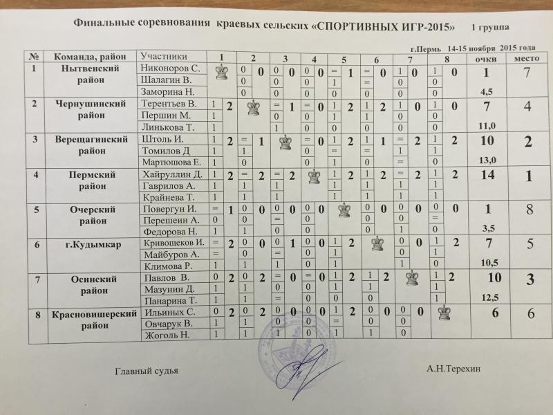 Шахматисты Пермского района победители краевых сельских спортивных игр 2015 года.
