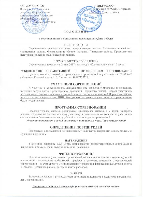 Шахматный турнир посвященный дню Победы, состоится 06 мая 2017 г. в д.с "Красава". Начало в 10-00 ч.