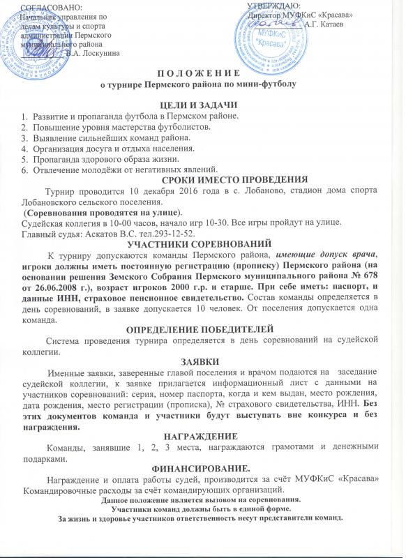 Турнир Пермского района по мини-футболу пройдет 10 декабря 2016 г. на базе дома спорта с. Лобаново